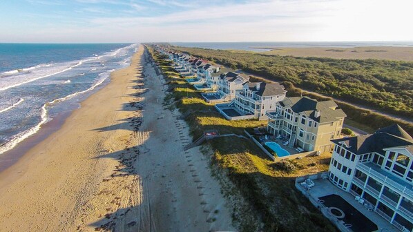Des vues incroyables sur l'océan et le son vous attendent dans cette maison de vacances exclusive. Nichée entre des kilomètres de la réserve naturelle Audubon Wildlife Refuge et de vastes plages de Corolla préservées, la prestigieuse communauté de Pine Island dispose de 2 piscines communautaires, d'un bassin pour bébés, d'une piste cyclable et de courts de tennis communautaires. Le club de raquette et de remise en forme voisin de Pine Island est disponible pour une somme modique. Le décor élégant d'Ashcroft comprend des comptoirs en granit, des carreaux personnalisés, des planchers de bois franc et de nombreux meubles uniques. Un bureau séparé est parfait pour s'occuper des affaires ou simplement se détendre. L'ascenseur facilite le déplacement des bagages et de l'épicerie. La piscine privée entièrement fermée et le bain à remous sont un excellent moyen de se détendre et de se détendre après une journée complète sur la plage, qui est juste devant votre porte arrière. Le luxe ne s'est jamais senti aussi bien.