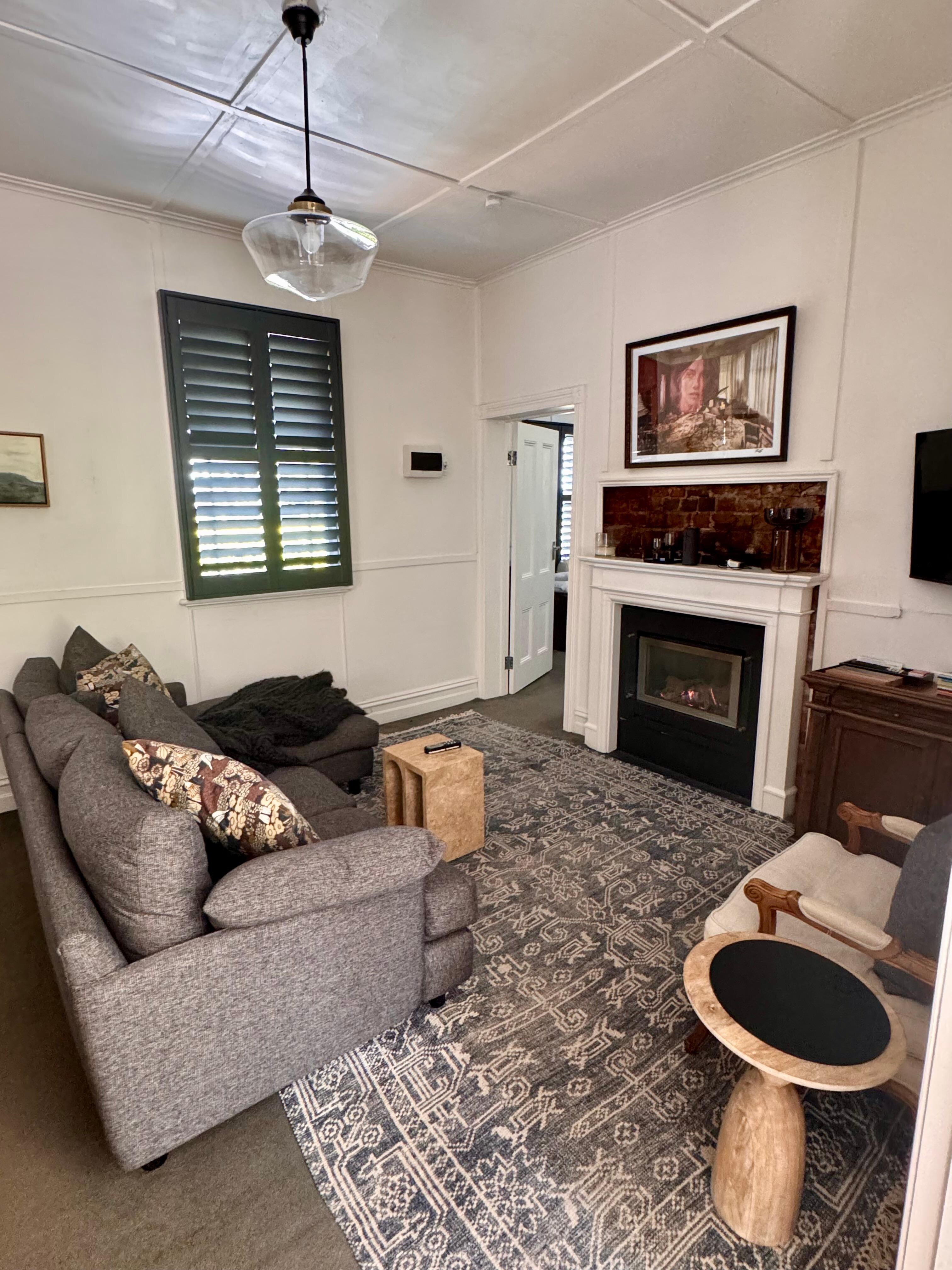 Inside, the home blends historic character with refined styling. There are two cosy bedrooms – one with a queen bed and the other with a king bed - each thoughtfully appointed to ensure comfort and rest. A modern kitchen and dining area provides everything you need for home-style meals, while the snug sitting room invites you to curl up and relax after a day of exploring. The spacious bathroom features contemporary finishes, with a generous walk-in shower or bath for a refreshing start or end to your day.