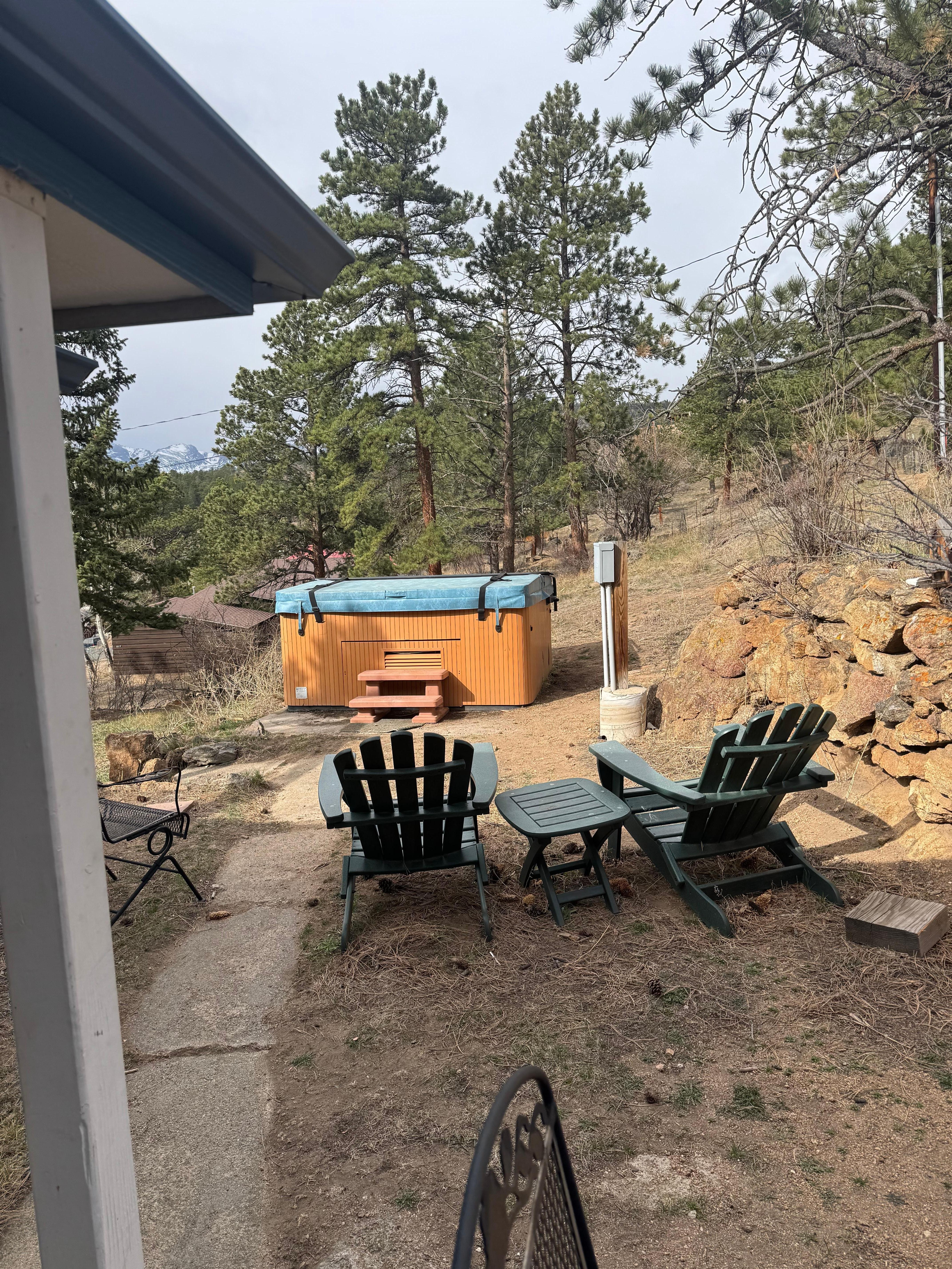 Profitez d'une vue sur la montagne depuis le bain à remous après une journée de randonnée! Admirez la faune qui serpente dans le quartier! Ou tout simplement, prenez l'ambiance d'un quartier vintage d'Estes Park et du chalet Spruce Drive !!
