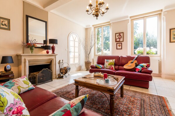 Rez-de-chaussée : Une grande cuisine toute équipée, un grand salon avec billard, une cheminée à foyer ouvert (bois offert) et un piano musical donnent une ambiance très particulière à ce lieu. Une salle d'eau avec douche à l’italienne, un WC séparé, une buanderie avec lave-linge et sèche-linge complètent ce premier niveau. TV par satellite avec chaînes internationales et wifi haut débit permettent le télétravail.