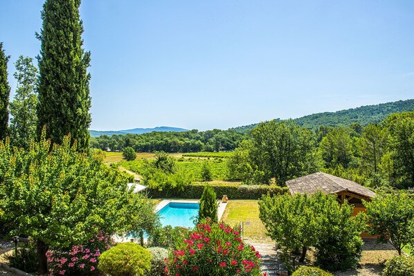Each apartment has its south-facing terrace, from which the view of the swimming pool, the vineyards and the hills is superb.