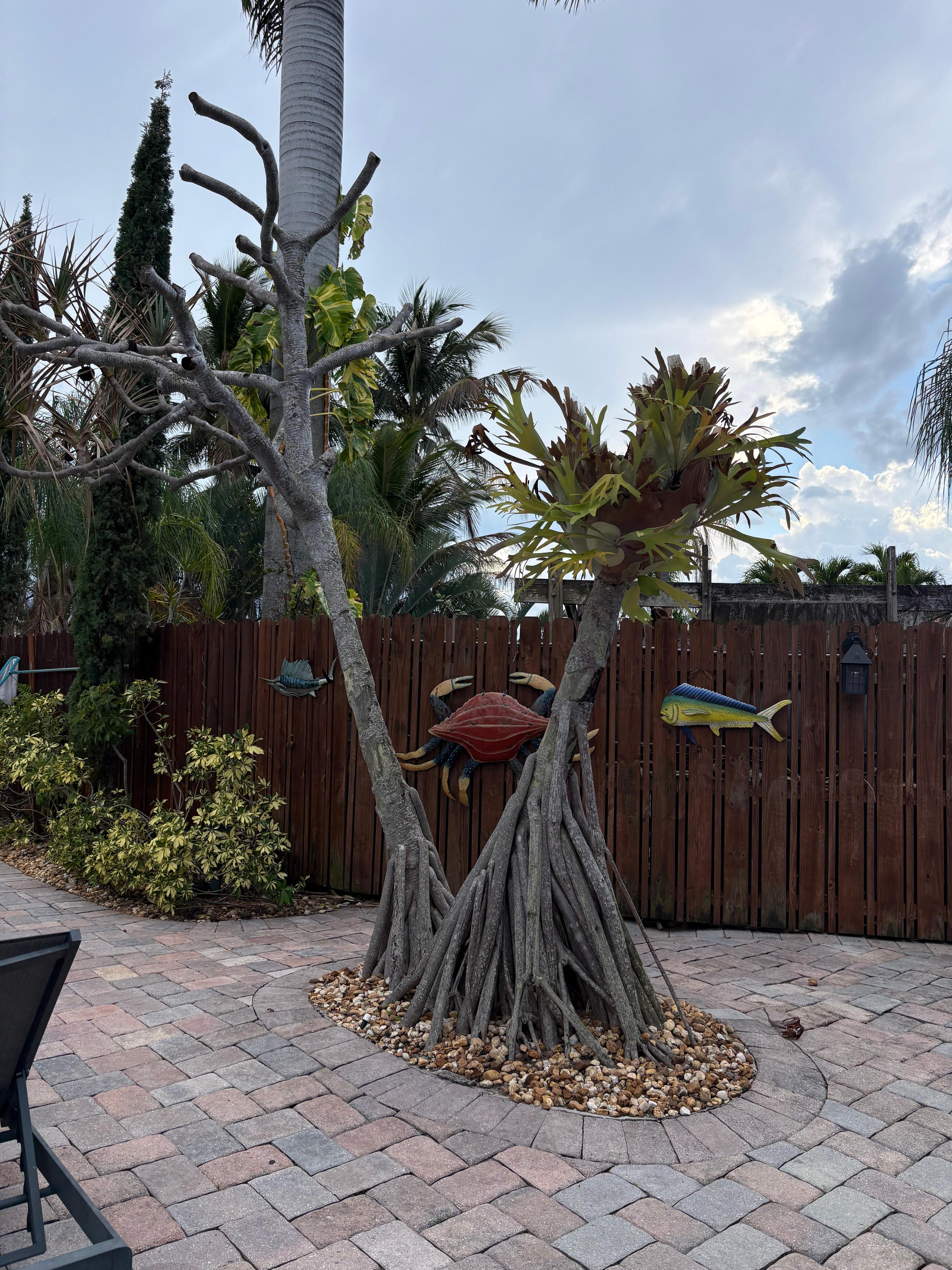 La cour arrière offre confort et commodités à un standard de destination. Des palmiers majestueux, un aménagement paysager luxuriant avec une variété d'arbres et de plantes créent une sensation de jardin tropical authentique avec une intimité optimale. La piscine est chauffée et comprend de grandes chaises longues et une salle pour bronzer. Il y a aussi un coin repas et grill en plein air. Une fontaine de Bouddha, un éclairage décoratif, un mobilier attrayant et des éléments d'inspiration asiatique invitent à la détente paisible.