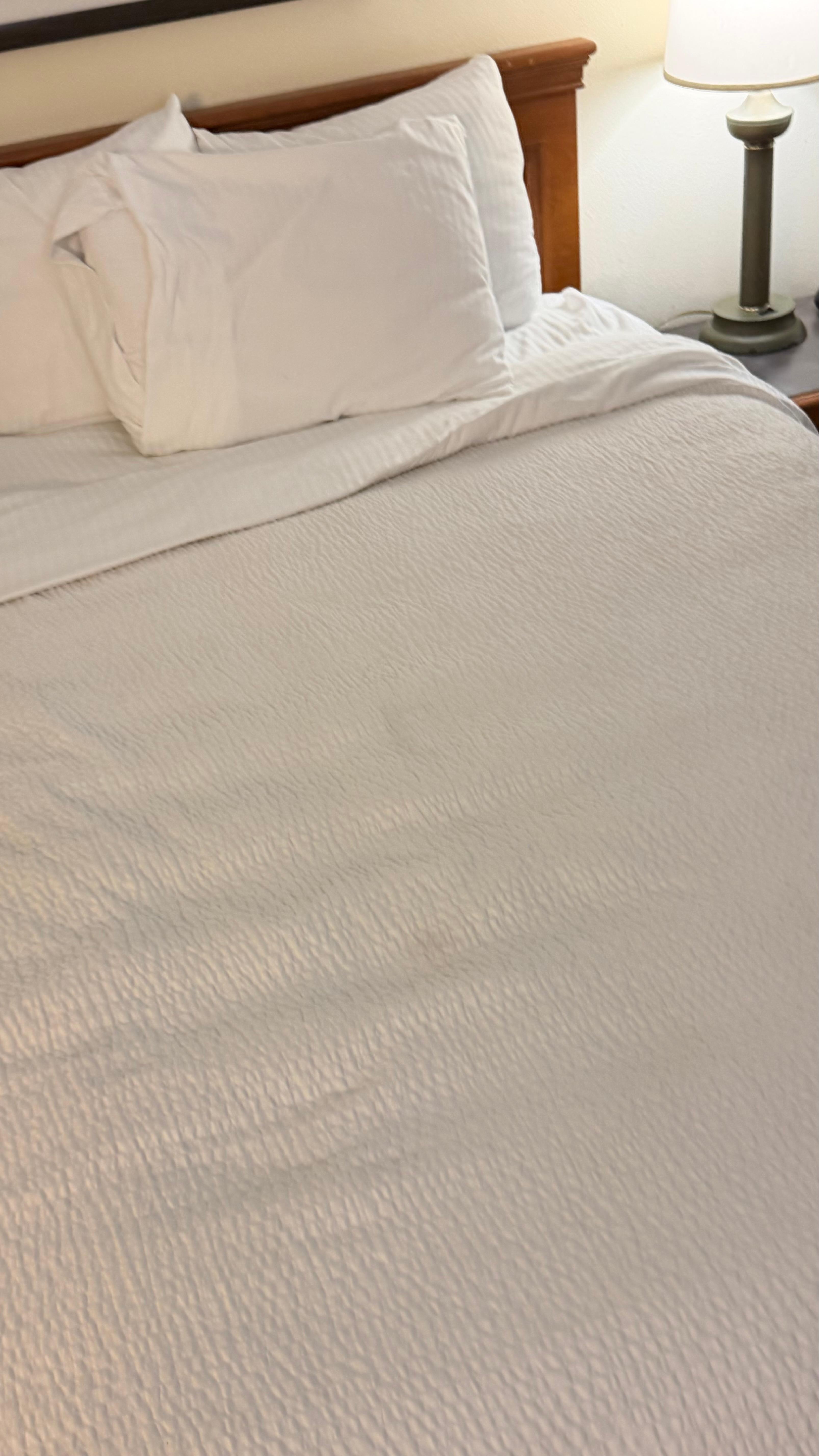 This hotel was in desperate need of complete renovation. It was old and filthy; the elements of the room (furniture, linens, doors, walls, carpet, etc.) were in atrocious condition. I was only there for a single night otherwise I would have left immediately. I don't need a palace, but I do need very clean and tidy. I thought I was going to be sick when I saw it. We had a 4 hour drive to get there for appointments at Cleveland Clinic Hospital. By the time we checked in we had undergone a day of testing after a long drive. We wee too exhausted to go elsewhere so we toughed it out for a night. The sheets I slept on were so pilled it felt like I was sleeping on piles of sand. Suffice it to say I will be booking the rooms from here on out as my husband doesn't check reviews.
