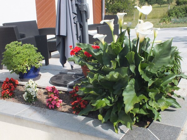 Vous disposez des plantes aromatiques et de fruits et légumes du jardin selon la saison (cerises, mirabelles, pommes etc).