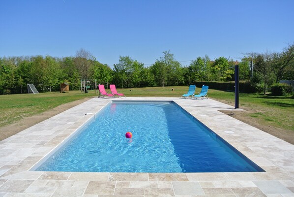Après vos visite vous pourrez profiter de votre jardin et terrasse privatifs ainsi que de la piscine 12*4 chauffée et couverte de la propriété ( piscine ouverte du 23 avril au 30 septembre, à partager avec un autre gîte et les propriétaires). A votre disposition également, portique, cabane et jeux pour enfants ainsi qu'une table de Ping-pong.