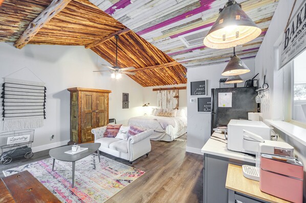 Votre séjour à Fredericksburg commence dans ce cottage qui se situe à moins de 2 km des sites suivants : Main Street, Pioneer Museum (musée d'histoire) et Parc Cross Mountain. Galerie d'art Artisans At Rocky Hill et Fredericksburg Winery se trouvent également à moins de 2 km de distance.