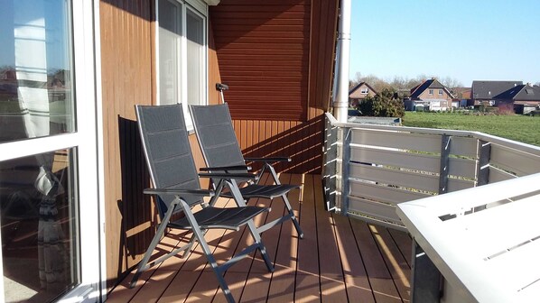 Exposé plein sud, balcon (loggia) avec mobilier de jardin et chaises, télévision par câble / satellite, radio avec lecteur CD,