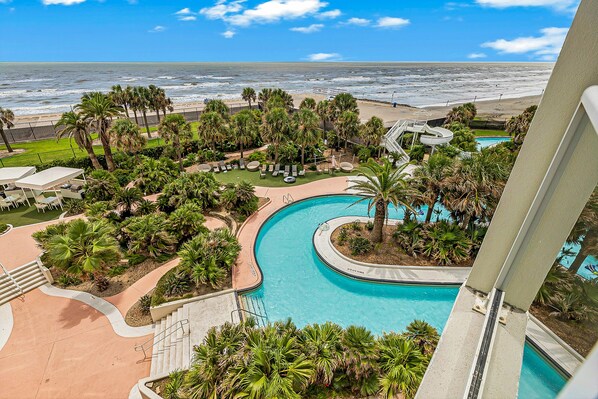 Beachfront condo with beach access, game room, gym, pools, theater room, balcony