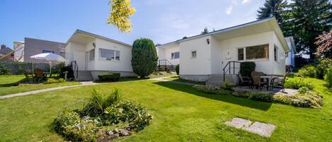 Eine sehr schöne großzügige Unterkunft mit einem Garten und einer überdachten Terrasse.Unten gibt es 2 kleine Schlafzimmer und ein kleines Badezimmer mit Dusche.Oben gibt es 2 große Schlafzimmer mit einem großen Bad und einem separaten Raum in welchem die Sauna und eine zusätzliche Dusche untergebracht sind. Unten sind neben dem Gäste WC noch eine große Diele und das wirklich große Wohn-Esszimmer und die große Küche untergebracht. Durch die gute Aufteilung der Schlafzimmer kann man sich das Ferienhaus, super mit einer zweiten Familie teilen da sich 2 Bereiche ergeben. Die Küche ist gut ausgestattet, 2 Geschirrhandtücher und 1 Spüllappen lagen bereit. Die Betten waren bei unserer Ankunft bezogen und Handtücher waren ausreichend vorhanden. Es sind zwei Hochstühle und ein Babyreisebett vorhanden. Zum Sandstrand waren es max. 5 min zu Fuß. 2 Bäcker und ein Netto waren fußläufig erreichbar.Ca. 3 Autos können auf dem Grundstück parken.Insgesamt waren wir mit der Unterkunft super zufrieden und können einen Urlaub hier empfehlen.
