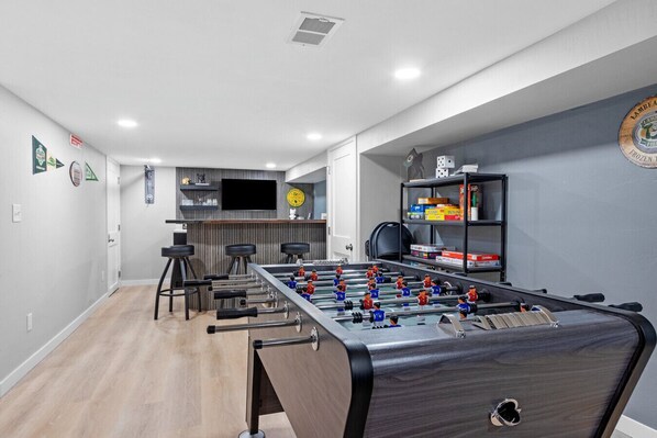 For fun and games, the garage has been converted into a dedicated game room with a ping-pong table and yard games. Please note that the garage is not available for vehicle parking.