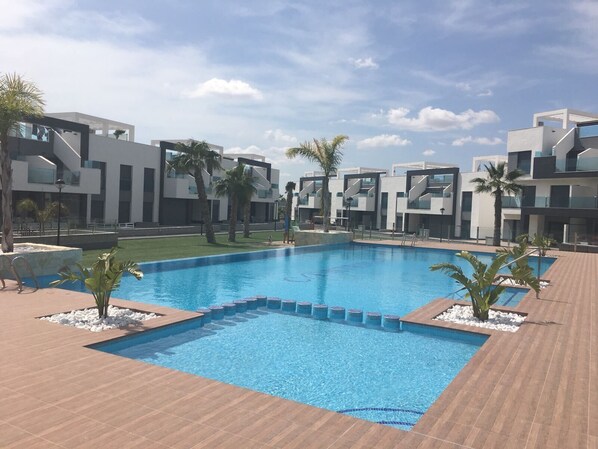 Restaurants, bars, supermarchés, pharmacie e. d. sont accessibles à pied. Pour information nous donnons les distances suivantes à titre indicatif: Guardamar 5min, Torrevieja 10min, Alicante 30min, grand centre commercial La Zenia Boulevard 30min, Murcia 50min