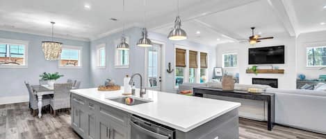 - Bedroom 1: First Floor, Primary, King Bed, TV, Ensuite Bathroom (Walk-in Shower)-