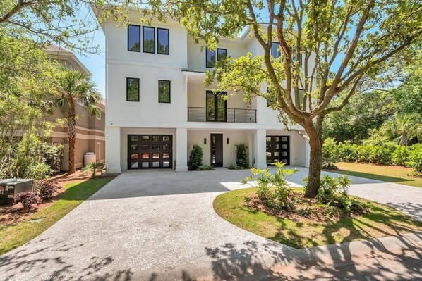 The most beautiful property we've ever stayed at! Brand new and the owner/s have thought of EVERYthing...from the open floor plan down to every detail. Every B/R has ensuite bath and several have closets big enough for a pack n play! The pictures don't do it justice. The kitchen is truly a gourmet chef's delight. Top of the line appliances, cookware, silverware, and everything to prepare meals (cutting boards, strainers, mixing bowls, measuring spoons/cups, etc.) Instapot, blender, crockpot, stockpot and toaster. Inside and outside dishes/drinkware are also plentiful. Quality beach towels and equipment including a sturdy wagon. The pool is perfect with lounge chairs, a wonderful hot tub, spacious shelf, and steps. And a great view of a large outdoor flat screen to watch all those sports. There's also easy access to a convenient half bath and an awesome outdoor shower. There's a primo ping pong table too! The beach is just a "tad" farther than thought (.4 mile from driveway to sand) BUT there's a great paved path just across the street easily walkable with the wagon while the grands rode scooters. The management company, Jon and Donna are professional, responsive, friendly and polite. I can't say enough positive. Don't hesitate to book as this property won't be available long.