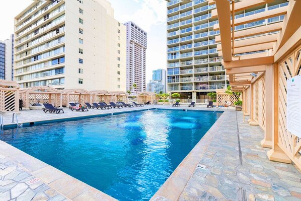 Cet appartement condo de Honolulu offre l'accès gratuit à Internet par Wi-Fi. Des bureaux et des chaises de bureau sont fournis.