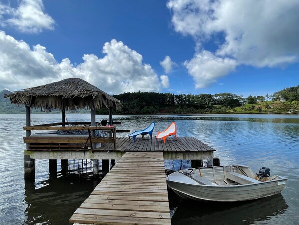 Maison de vacances se trouvant au bord de l'eau avec des cuisines et des patios
