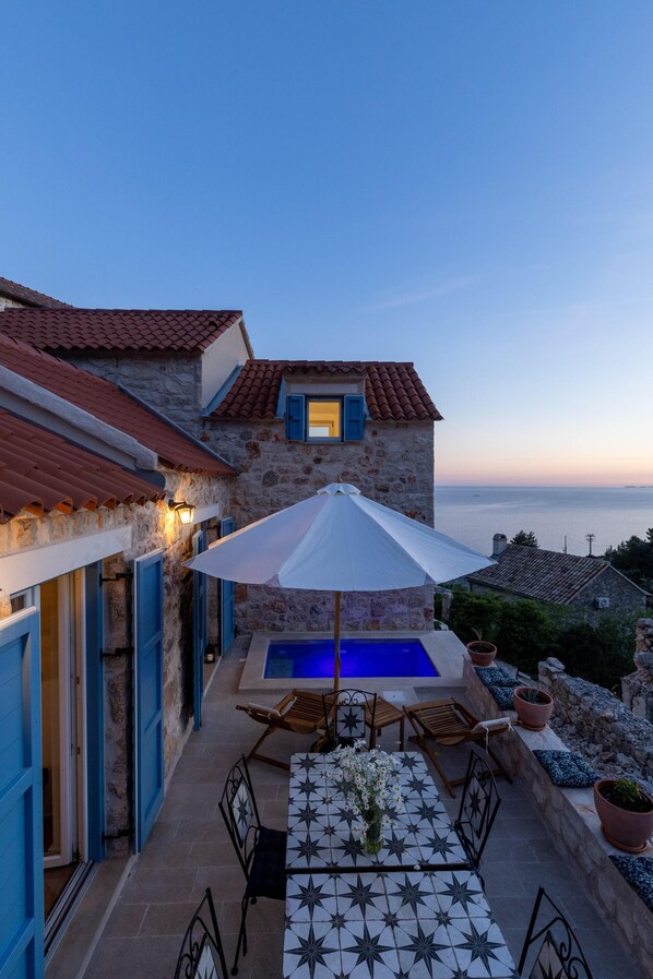 We were lucky enough to stay in this apartment soon after it had been renovated. The accommodation is very comfortable, well resourced and clean. The views are stunning, sitting outside on the terrace next to the plunge pool is a lovely experience. The village was very peaceful, the outside areas are not overlooked so you get a real feeling of privacy. The owner, Perina was very helpful and keen to ensure that our stay was the best it could be. We appreciated the drinks and snacks provided for our arrival. My teenage (16) son appreciated the outside room with ensuite to have as his own. We hired a car for the duration of our stay, this in my view is essential. Zarace beach is close by, if you are fit and mobile, you can walk their but their is a parking space reserved for you should you prefer to go by car which I would recommend when it's very hot. Hvar town is about a 10 minute drive away. Parking is straight forward. There are many restaurants, bars and boat trips to enjoy here. It has a great vibe, the locals are friendly and welcoming. We would definitely recommend this apartment, just be aware that access to the property is steep and rugged.