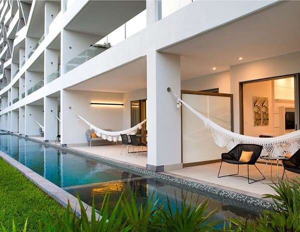 Les chambres climatisées de cet appart'hôtel incluent des piscines privées et un coffre-fort. Les chambres donnent sur un balcon. L'ameublement des chambres inclut des canapés-lits, des tables à manger et des îlots de cuisine. Les chambres ont une cuisine avec un réfrigérateur, une plaque de cuisson, un micro-ondes et une batterie de cuisine, de la vaisselle et des ustensiles. Les salles de bain comprennent une douche, un bidet et un sèche-cheveux.
