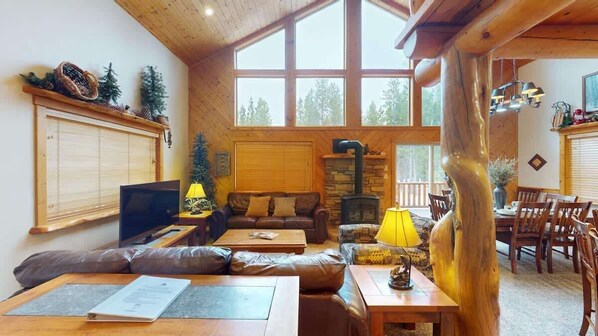 Un barbecue est disponible pour la cuisine en plein air, alors n'oubliez pas d'apporter vos steaks ou brochettes préférés, nous vous fournirons le propane! La cabine est équipée d'une télévision par satellite, d'un accÚs Internet et d'un bain à remous privé. Profitez de la beauté de la nature et venez vous détendre sur notre terrasse enveloppante. N'oubliez pas d'apporter votre maillot de bain pour vous détendre dans le bain à remous aprÚs une longue journée d'aventures! Huckleberry Inn est situé dans un excellent quartier à proximité des sentiers de Two Top ou Sawtelle Mountain. Apportez vos propres VTT ou louez-les à High Mountain Adventures, juste en bas de la route.