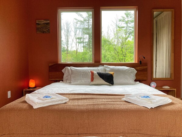 Our family of four stayed here for 4 nights during my daughter's college orientation week, and it was truly the nicest rental I've ever experienced. The location is just 15 minutes from downtown Ithaca, yet the property feels worlds away with its peaceful, private 10-acre setting. We enjoyed walking the forest paths and were delighted to see deer, groundhogs, and rabbits right outside.The house itself is beautifully designed, with an open Scandinavian style that feels both modern and welcoming. The shower was a highlight, and the screened porch was a nice place to sit with a book while listening to the rain. Thoughtful touches, like fresh flowers in the rooms, made the stay feel even more special.This is a wonderful retreat near Ithaca, and we’d hope to stay here again on our next visit.