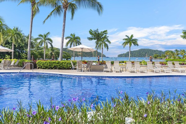 Nestled in the exclusive Del Mar condominium community, this beautifully renovated Bay Residence offers the perfect blend of elegance, comfort, and tropical charm. Enjoy a private waterfront setting with sweeping views of Herradura Bay and access to all the luxury amenities of Los Sueños Resort.