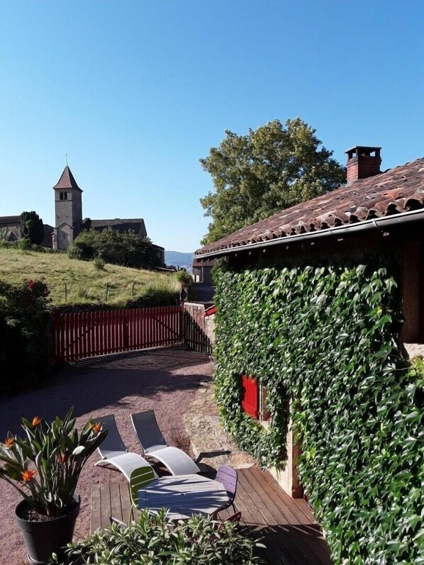 Agriculteurs retraités (anciens éleveurs de vaches charolaises & chèvres), Monique & André vous accueillent au sein d’une charmante authentique ferme traditionnelle érigée au XVIIème siècle, chargée d’histoire & restaurée avec soins (propriété familiale depuis des générations), sublimée par une jolie vigne vierge pluriséculaire qui habille sa façade, lovée en "balcon panoramique", à flanc de coteau sud exposé. Calme absolu en pleine campagne clunisoise préservée (protégé en Zone Natura 2000 & ZNIEFF pour ses richesses floristiques & faunistiques), dominant un vaste vallon "ouvert" de verdoyantes prairies bocagères cerclé de collines boisées (où pâturent de paisibles chevaux en saison & "Roudoudou" l’âne des propriétaires), blotti au cœur d’un pittoresque petit hameau rural juché en "vigie" sur une colline dominant la douce vallée de la Grosne & sa rivière poissonneuse, à deux pas de l’élégante église romane classée des lieux (datant du XIème siècle). Sublime écrin paysagé alentour, mixant agriculture & pleine nature entre bocages, & profondes forêts sauvages. Somptueux panorama & exceptionnelle vue dégagée sur les monts du sud Mâconnais. Cadre & site de toute beauté, littéralement enchanteur. Spacieux gîte de bon confort. Chaleureux cachet campagnard "néo-rustique" allié à l’ambiance dépaysante d’une ancienne demeure bourguignonne (restauration patrimoniale ultra soignée : historiques poutres & manteaux de cheminée, rarissime sol en dalles de pierres d’origine…). Agréable intimiste vaste cour close végétalisée parée d’une large terrasse exposée & ombragée (selon). Composition : Gîte mitoyen à l’habitation des propriétaires (totale indépendance). Wifi (fibre / accessible uniquement depuis la terrasse). Chauffage central fioul. Rdc : séjour-cuisine-salon (canapé convertible 1 p. 130x190cm en appoint), 1 chambre (lit 2 p. 140x190cm + lit 1 p. 90x190cm), salle d’eau (douche/wc). Terrasse + cour close (gravier) + parking privés. Commodités dont supermarchés à 6 km. Cadre & site enchanteur au creux d'un site chargé d'histoire ! Ravissante authentique ferme traditionnelle de caractère du 17ème siècle intégralement restaurée & revisitée en douce villégiature - parée d'une intimiste vaste cour close avec terrasse - nichée au calme en plein cœur d'un paisible & pittoresque hameau rural pétri de charme perché à flanc de colline exposée, à 6 km de l'illustre cité abbaye de Cluny de renommée mondiale (l'une des plus belles perles de Bourgogne, dotée du prestigieux label "Patrimoine Européen" / toutes commodités sur place dont supermarchés). En pleine campagne clunisoise préservée, dominant la verdoyante vallée de la Grosne au creux d'un magnifique écrin vallonné conjuguant bucoliques prairies bocagères, vignobles & belles forêts sauvages, au cœur d'un vaste espace naturel protégé en Zone Natura 2000 & ZNIEFF (pour ses très riches écosystèmes), voisinant le massif du nord Beaujolais (vaste espace VTT balisé à découvrir), les "Verts Vallons" de Sud Bourgogne & la "Petite Suisse du Mâconnais" (splendide territoire du Haut Clunisois) face au massif Sud-Bourgogne & aux monts du Mâconnais abritant le somptueux joyau paysager des Roches de Solutré & Vergisson labellisé "Grand Site de France" (sis à 21 km). Emplacement ultra privilégié à deux pas des premiers vignobles du Mâconnais (dont le célèbre "Val Lamartinien" tout proche du nom de l'illustre hôte des lieux) comme de la "Route des Vins de Bourgogne", non loin des vignobles du Beaujolais (premier vignoble au monde reconnu "Géoparc Mondial de l'UNESCO"), idéalement situé sur les tracés du circuit des églises romanes, du GR76 connecté au célèbre GR du "Chemin de Cluny" (ViaCluny) comme au mythique "Chemin des Moines" (reliant jadis les abbayes de Cîteaux et Cluny), de plusieurs sentiers balisés en "balades vertes" (vaste réseau de chemins de même type à parcourir à pied ou VTT sur le territoire), à 4 km de la Voie Verte de la "Grande boucle de Bourgogne du Sud" (& son remarquable "Tunnel du Bois Clair" accessible à 4.5 km, ancien tunnel ferroviaire le plus long de France ouvert à une Voie Verte avec ses 1.6 km) accolée à la "Cycloroute71" (Tour de la Saône-et-Loire à vélo), 5.5 km du réputé circuit VTT du GTM labellisé "VTT FFC" (Grand Tour du Massif Sud Bourgogne connecté à un vaste réseau d'identiques parcours balisés sillonnant le massif "en étoiles") & 22 km de la Voie Bleue (longeant la Saône). A la croisée du Mâconnais, du Beaujolais, du Clunisois-Tournugeois (labellisé "Pays d'Art et d'Histoire") & du Charolais-Brionnais (labellisé "Pays d'Art et d'Histoire"). Parfaite localisation pour facilement rayonner (accès RCEA à 3 km) : à 17 km de Taizé (& sa célèbre communauté religieuse), 22 km de Mâcon (gare de Mâcon Loché TGV à 21 km), 30 km de Saint-Gengoux-le-National labellisé "Cités de Caractère de Bourgogne-Franche-Comté", 30 km du village médiéval de Brancion, 33 km de Charolles, 35 km du "Hameau Dubœuf" (1er parc à thème sur la vigne & le vin en Europe), 37 km de Beaujeu (capitale historique du Beaujolais) 40 km de Tournus (site abbatial de renommée internationale), 42 km de Vonnas (village gastronomique & gourmand de Georges Blanc) & 49 km de Paray-le-Monial. Un apaisant "refuge" pour une relaxante "mise au vert" aux multiples plaisirs & découvertes, en famille comme en amoureux ! Quiétude & repos garantis !