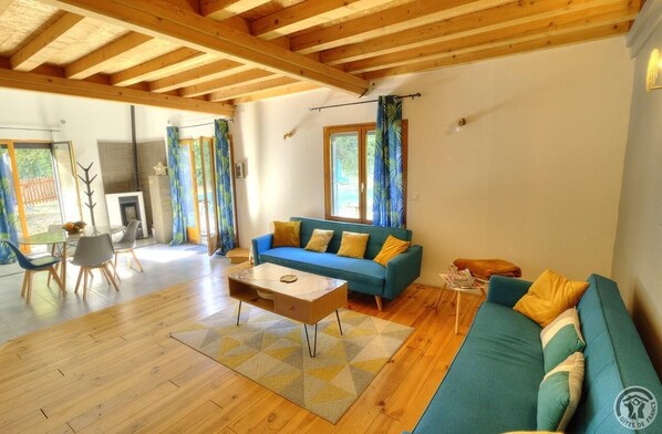 Au cœur du Beaujolais, venez découvrir les vignobles ou profiter d'une pause nature le temps d'un week-end, d'un court séjour ou des vacances dans ce gîte moderne. Le centre du bourg se situe à seulement 2km, l'occasion de visiter les vignes et les villages environnants. Nombreuses randonnées au départ du gîte. Sur place, les propriétaires pourront vous proposer une dégustation chez un vigneron. Ce gîte, sur 2 niveaux, décoré avec beaucoup de goût se situe à l'arrière de la maison des propriétaires et permet d'accueillir jusqu'à 4 personnes. Rez-de-chaussée : vaste pièce de jour très lumineuse avec un accès direct sur la terrasse et le jardin, poêle à granulés bois, coin cuisine, coin repas et coin salon. Salle d'eau avec wc. Nouveau, un coin nuit avec 1 lit double a été aménagé et séparé du séjour par une cloison en bois permettant de moduler les couchages en fonction des hôtes (soit 2 lits simples à l'étage et 1 lit double au rdc, soit 1 lit double en bas, 1 lit double à l'étage, soit uniquement l'étage, soit 4 personnes dans 4 lits et dans ce cas, supplément de 20€ se renseigner auprès des hébergeurs). Étage : chambre familiale pour 4 personnes avec 1 lit double et 2 lits simples, une petite mezzanine avec coin salon. Mise à disposition du lave-linge sur demande. Terrasse aménagée avec une table en bois, transats, un barbecue au charbon de bois et un coin pelouse. Parking pour 2 véhicules maximum. Borne de recharge électrique, en supplément, sur demande préalable. Idéal pour les familles, le logement dispose de nombreux jeux intérieurs et extérieurs pour le plus grand plaisir des enfants.Prêt de vélo sur place possible. Possibilité de commander votre petit déjeuner la veille pour le lendemain (pain, viennoiseries, confiture,lait,...). Gîte non-fumeur et rassemblements festifs non autorisés. Tourisme œnologique avec le hameau en Beaujolais à 15 min, base de loisirs, Touroparc (zoo et attractions) à 11 km, nombreux sites touristiques remarquables. Gîte contemporain au cœur du Beaujolais , pour goûter aux plaisirs de la campagne et être au contact des chevaux.