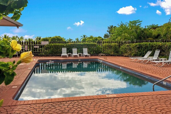 Guests will have access to the entire 2nd-floor condominium unit, including two bedrooms, two bathrooms, a living room, kitchen, and a lanai/balcony. Enjoy access to the communal pool, BBQ grill area, and beach access. Additional amenities include free parking in a reserved covered spot, elevator access, and a private entrance. Please note that the pool has specific hours and rules, and there are no pets allowed.