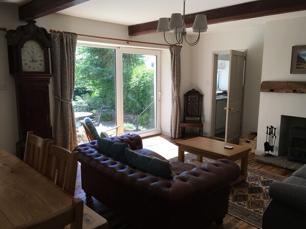 Nous avons de beaux lits confortables pour 5 personnes, et en bas un Chesterfield en cuir, un canapé séparé et un fauteuil simple où vous pouvez vous asseoir et regarder les vaches et les moutons venir vous dire bonjour au fond du jardin. Il y a une belle véranda avec vue plein sud sur le jardin et les champs au-delà. La salle de bain a une baignoire autoportante à deux extrémités faite pour deux et une douche vivifiante séparée. Prenez un bain luxueux, puis blottissez-vous devant le poêle à bois avec un bon livre et un verre de bulles. Vous le méritez.