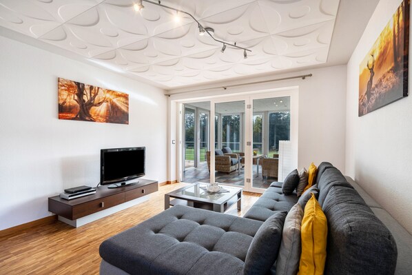 Appartement de vacances "Naturzeit" avec jardin d'hiver, balcon et grand jardin commun.