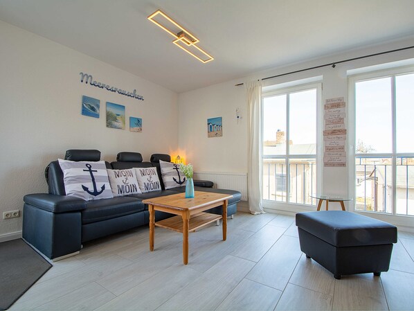 LARGE-SPACIOUS 3-ROOM APARTMENT WITH TERRACEYou live in a 72m² large 3-room apartment, located in the 1st. Upstairs. The living room is equipped with couch, TV, dining area and kitchenette (stove, dishwasher, coffee machine). In the first Bedroom is a double bed, the children's room is equipped with a sofa bed. The bathroom with shower and toilet complete the overall picture of this apartment. Per person a laundry package is available as an initial equipment. A parking space belongs to the apartment. Sauna, washing machine and dryer can be used for a fee in the house.