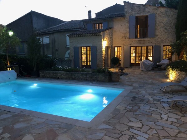 Renovated stone house with private walled garden, heated pool, in quiet village.