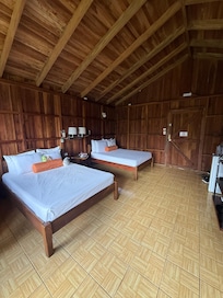 The superior bungalow was spacious and well-equipped with a functional AC, mini-fridge, and seating for four. The beds were firm, which I prefer. Housekeeping was excellent, visiting daily to mop and change towels; we felt completely safe leaving our belongings in the room.
