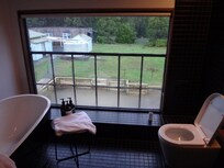 it was just a nighmare : i had a room with a very low ceiling and with my medium size of 1,72meters i can touch the ceiling with my fingers !!! i never see such inconfortable room as you feel scratched by this ceiling. They forget to mention on the website they don't have lift for my room and i have a very bad leg. The TV is small compared to others hotels, no wifi in rooms and at reception (they just bring a phone to connect and read your emails - very slow ). They said it's impossible to have wifi and for me it's not true : they are at 2 kms of the road and i have been to a real wilderness lodge very remote near craddle mountain which have an excellent wifi. Almost no furniture and very low windows touching the floor but when you stand up you don't see the sky : only the grass downstairs. They made theses rooms in an old building and they didn't respect the layout and didn't put the windows at the right level : so everybody can see you in your bed, your shower, your toilets and you don't have a great view as the window is too low and far from the ceiling. So very disturbing and annoying. Never see such disturbing and horrible room. The target of the owner was to make as much possible rooms in this old building and it's why ceilings are too low and windows have a very bag position giving a view from downstairs to your bathroom and bedroom. They also said there is always somebody at reception but when i tried to call : i just get many times the voicemail - services are bad