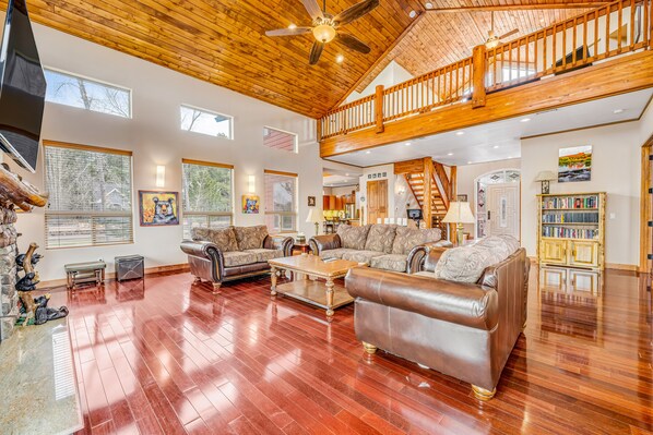 After a day of adventures, entertainment options at home include four streaming-capable TVs, free high-speed WiFi, and board games. During nights at home, take your pick of either living room, each featuring a gas fireplace, or retreat to the primary bedroom, also featuring a fireplace and a TV of its own. More vacation necessities include central AC and a washer/dryer. Whether you've come to relax or explore, the dreamy getaway you're looking for awaits - all that's left to do is book.