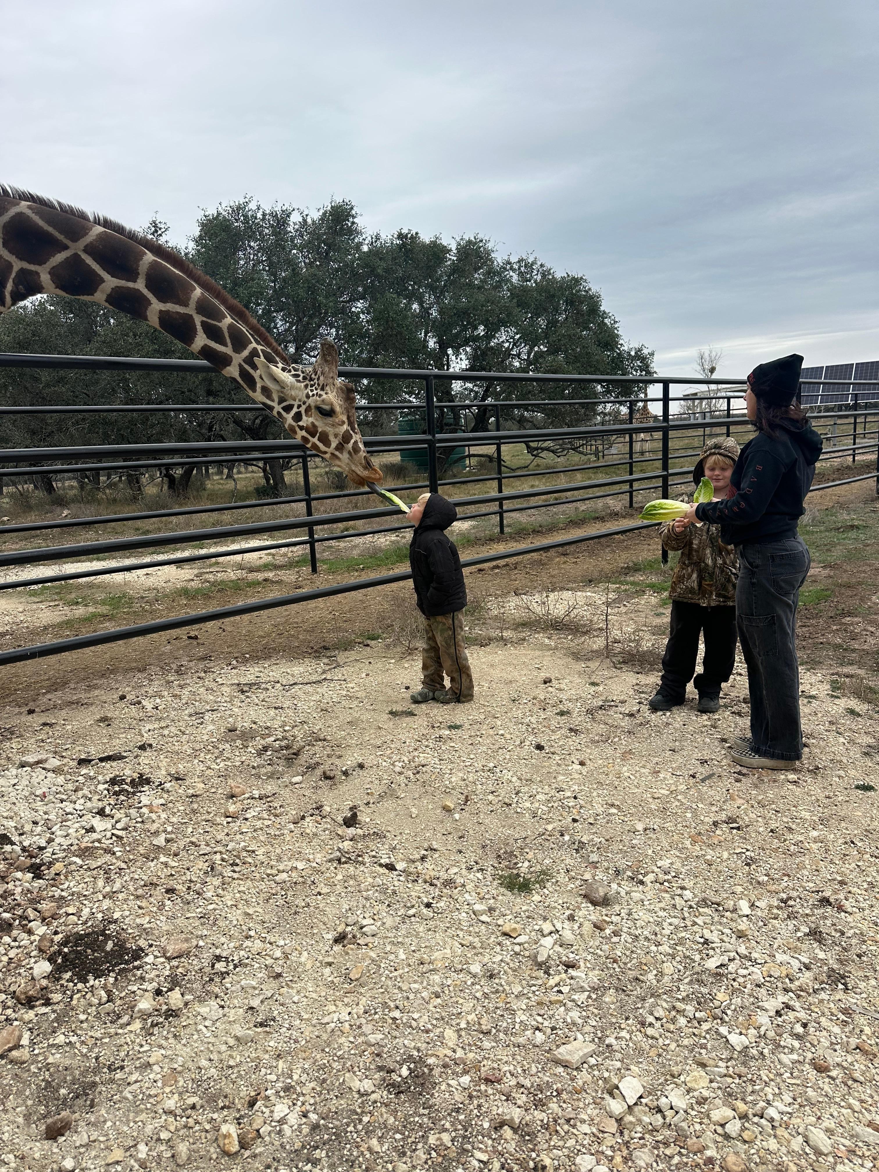 Escape to Artemis Cottage: a luxurious safari retreat in the Texas Hill Country. Nestled on a sprawling 3,700-acre ranch, Artemis Cottage offers an extraordinary getaway blending luxury, adventure, and unparalleled wildlife encounters. Enjoy breathtaking views and the unique opportunity to interact with our four friendly resident giraffes and African white rhino during an included** private safari experience featuring hand-feeding.