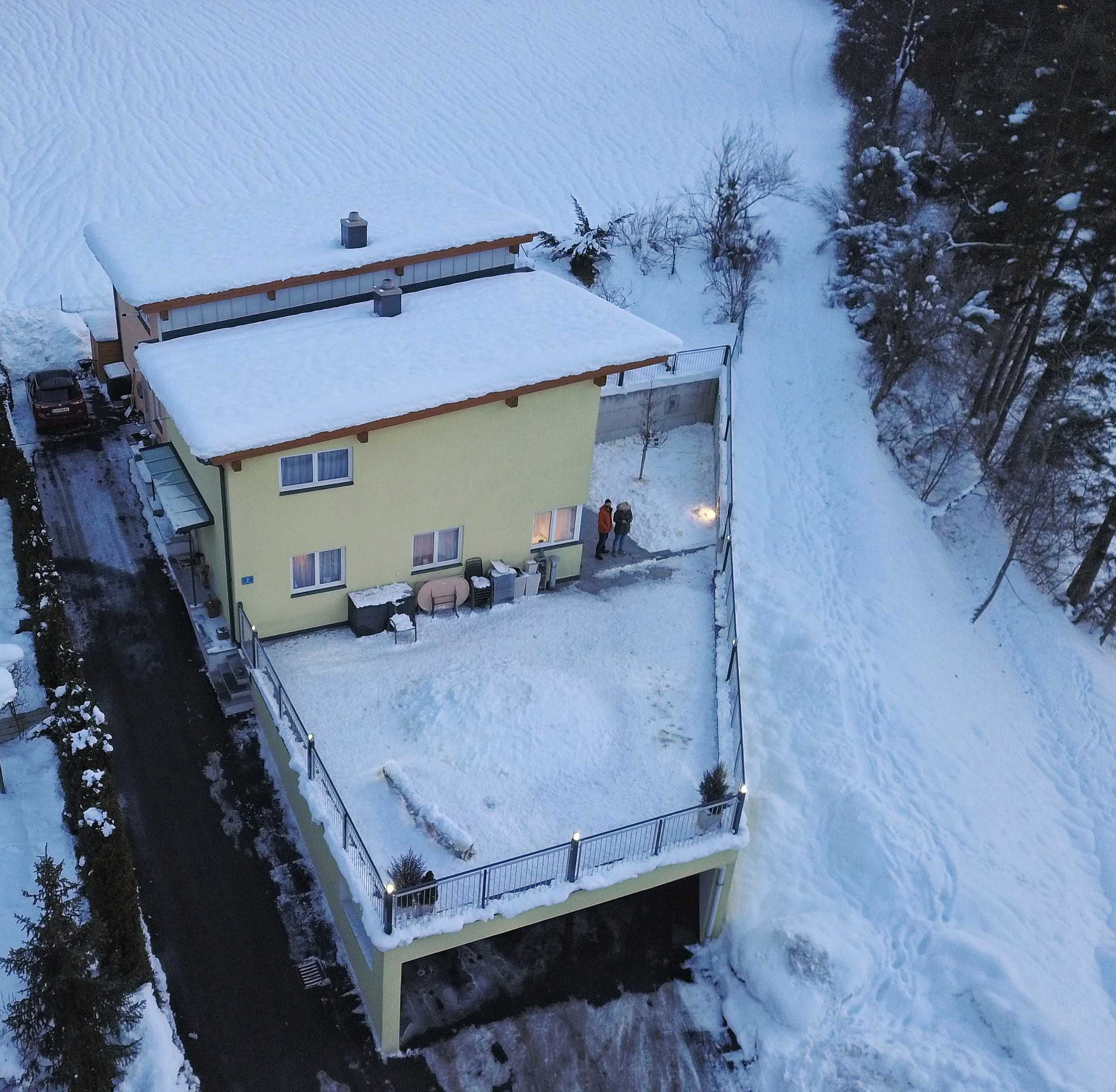 5-room apartment 110 m2, lower ground floor. Cosy and wooden furniture furnishings: entrance hall. 3 double bedrooms. Walk-through room with 1 double bed and satellite TV (flat screen). Living/dining room with satellite TV (flat screen). Kitchenette (4 hot plates, oven, dishwasher, electric coffee machine, Capsules for coffee machine (Tassimo)). Shower, shower/WC, sep. WC. Garden. Terrace furniture. Beautiful view of the mountains and the countryside. Facilities: Internet (WiFi, free). Maximum 2 pets/ dogs allowed.