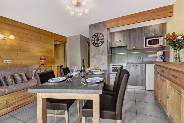 Nos appartements et chalets de luxe sont situés à quelques minutes de marche du village, vous pouvez aller chercher chaque jour pain et croissants frais, vous rendre dans un restaurant pour déguster un repas repas typiquement savoyard, ou faire une promenade en dameuse et profiter d'une ambiance chaleureuse dans un restaurant d'altitude perché dans la montagne.