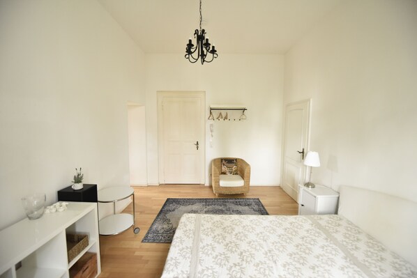 Pour certains Capacité d'accueil existent: le lit double confortable et deux canapés-lits dans chacune des chambres séparées. La salle à manger se trouve dans la cuisine lumineuse avec vue sur le jardin. La cuisine est entièrement équipée pour votre plaisir de cuisiner. Bien que les plafonds sont près de 4 mètres de haut, mais l'appartement reste chaud même pendant les saisons froides grâce au nouveau chauffage central moderne. En plein été, la salle a une température agréable. Parce que des vieux murs épais, l'appartement ne soit pas en surchauffe.