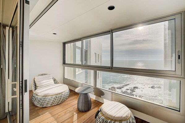 - La Master Room, avec vue sur la mer, un lit king-size (160x200), un dressing sur-mesure et une salle de bain spacieuse avec douche, baignoire, sèche-serviettes et sèche-cheveux.