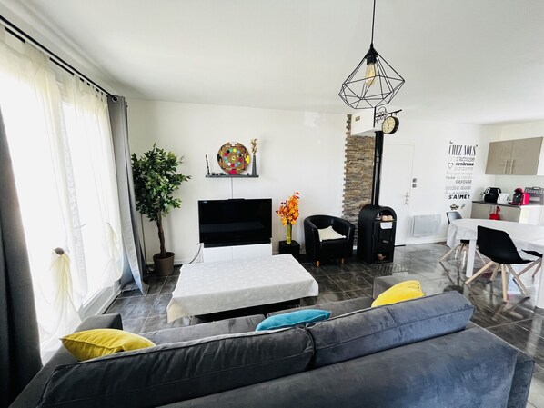 Dans le quartier des fosses rouges a seulement 2.1km de la plage de la tanchet, a 3.6 km de la grande plage des sables d'olonne. A proximité des grandes surfaces super u et intermarché. Dans un quartier résidentiel avec jardin clos . Proche du zoo des sables d'olonne.