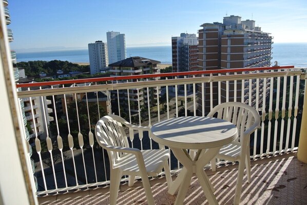 Le studio situé au 9ème étage dispose d'un séjour avec 3 lits, kitchenette, salle de bain avec douche, terrasse. Machine à laver