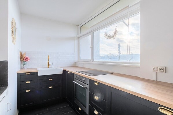 La cuisine est équipée avec tous les ustensiles et plats pour déjeuner et dîner.