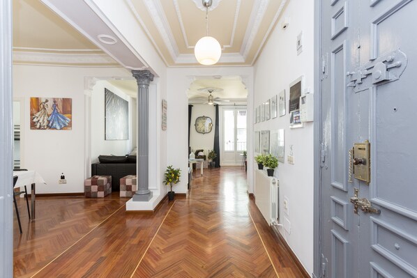 We stayed here for a few days in March 2022. The apartment is in a great location and is HUGE, but I wouldn't stay here again. From the beginning the management only contacted me off VRBO platform. This place had no reviews, so I was worried. We showed up and the door code did not work. Then the cleaning lady said we had to pay a 5XX Euro cash deposit. We said no way, that wasn't in any VRBO information. She backed off. The door code wasn't fixed, so another lady shows up to let us in while we sat for about an hour. Were given "new" keys, but found most didn't work for the door. Then this new lady demands a 5XX Euro deposit. She gets the manager on the phone and he yells at us. We had everything printed off of VRBO (thank God), and no where did it require 5XX Euro extra. That's a lot of money! He persisted, and was an absolute ass. I finally had to call VRBO and they contacted the manager. Only THEN did he back down, claiming "other platforms require it" or some nonsense. It was 45 minutes of badgering and stress and wondering if we'd be thrown out on the street. After that, I didn't sleep well wondering if this jerk was going to bust into the place and demand money again. The location is incredible, but don't deal with this guy. He emailed (off platform) and asked if the stay went well and for a good review. Not gonna happen. He's a swindler and a con. I told VRBO all of this, but didn't get the impression they cared so I'm sharing this here. Stay in this neighborhood, but not at this apartment.