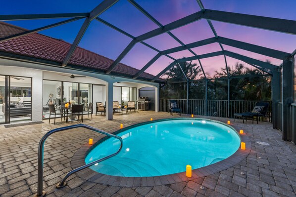 _ grill sur lanai, 2 vélos, raquettes de tennis, chaises de plage et chaises longues,