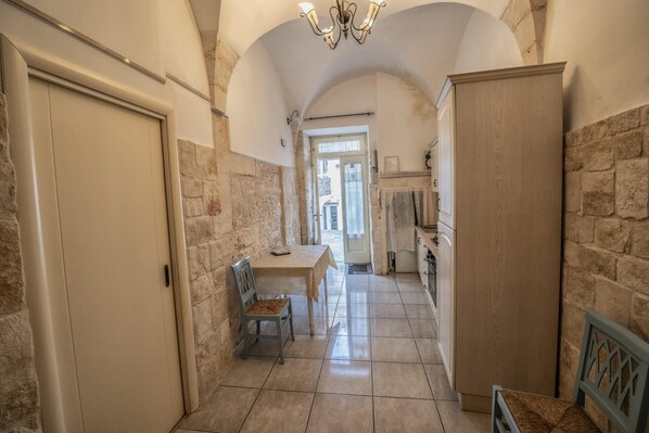 Located in the very heart of the historic center of Martina Franca, among the charming white alleys of the beautiful Valle d Itria, Casa Coppaiaia is a welcoming residence set inside an authentic historic stone building. Carefully renovated, the apartment preserves the distinctive features of traditional Apulian architecture, such as barrel vault ceilings, exposed stone walls and rustic details, elegantly combined with bright, functional and thoughtfully designed furnishings.