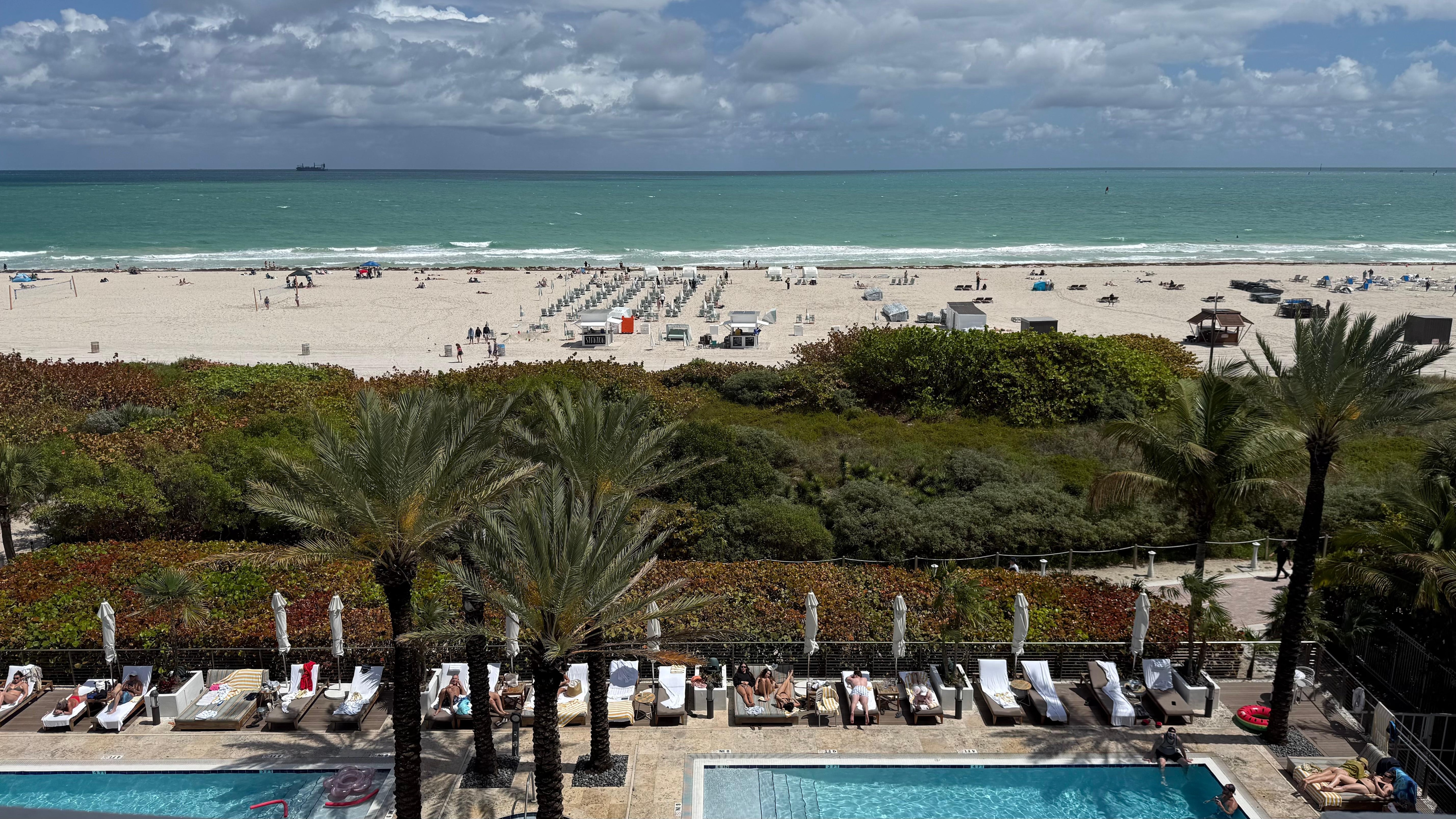 Très bel hôtel dans quartier paisible de South Beach. Plage privé un gros +. Super resto japonais sur place (1 étoile Michelin). Personnel sympathique, accès internet A1, location vélo compris, cours de yoga et transat sur la plage. Parasol payant 25$/jour et Cabana hors de prix 200$/jour. Chambres ont besoin d'être rafraichies et le service de bar sur la plage est très très lent. Plein de bons resto a proximité + épicerie + pharmacie.