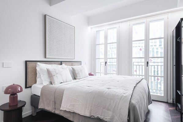 The spacious double bedroom is an oasis of tranquility, tastefully furnished and equipped with a large wardrobe that offers plenty of space for your wardrobe. Every detail has been taken care of to ensure maximum comfort and style. The bathroom, entirely covered in black and white marble, is a masterpiece of design with a spacious walk-in glass shower, perfect for a daily luxury experience. The dark parquet flooring laid in a herringbone pattern adds a further touch of elegance and warmth to the entire environment, creating a welcoming and refined atmosphere.