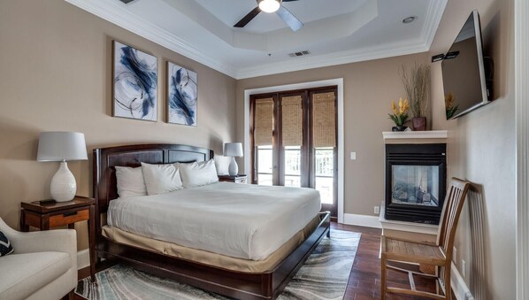 Enter the pinnacle of luxury living in this gated community, where gas lamps illuminate tree-lined brick walkways, porches boast stately columns, and balconies offer a charming escape. This community stands as a beacon of premier style and an unrivaled location. As Mahogany French doors swing open, you're welcomed to a terrace where bay breezes and natural surroundings create a tranquil oasis. The open living area is a masterpiece of design, featuring 16' ceilings adorned with crown molding for an airy and grand ambiance. The gourmet kitchen is a culinary haven, showcasing granite countertops, Viking stainless steel appliances, a gas range, and custom hardwood cabinetry. It's a space where every culinary desire can be fulfilled. The master suite epitomizes luxury with a private terrace boasting bay views, a gas fireplace, and a lavish bath adorned with white marble, a whirlpool tub, and a separate shower. Sleeping up to 8 guests, this residence features a king bed, a queen bed, and another queen bed for a restful night's sleep. Immerse yourself in the elegance of this 3-bedroom, 3.5-bath haven where every detail is a testament to refined living. As an added bonus, use of the golf cart is included in your stay, providing convenient and fun transportation for your Sandestin adventures!