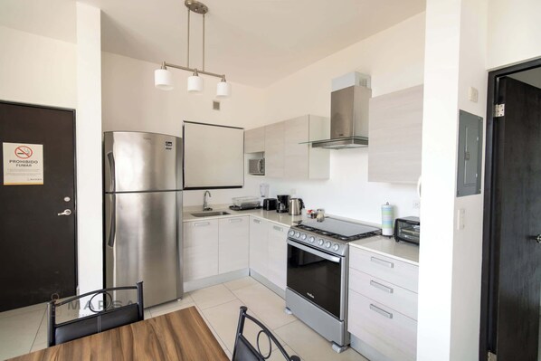 Les chambres climatisées de cet appartement incluent une cafetière ou une bouilloire et un sèche-cheveux. Les chambres donnent sur un balcon. Les chambres ont une cuisine avec un réfrigérateur, une plaque de cuisson, un micro-ondes et une batterie de cuisine, de la vaisselle et des ustensiles. Les salles de bain possèdent une douche.