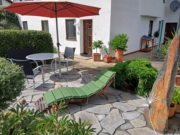 Profitez de votre espace privé dans le jardin ainsi que de la terrasse meublée, non couverte, avec barbecue – idéale pour les repas en plein air et la détente. L’appartement est calme, ensoleillé et dispose d’une entrée indépendante pour préserver votre intimité.